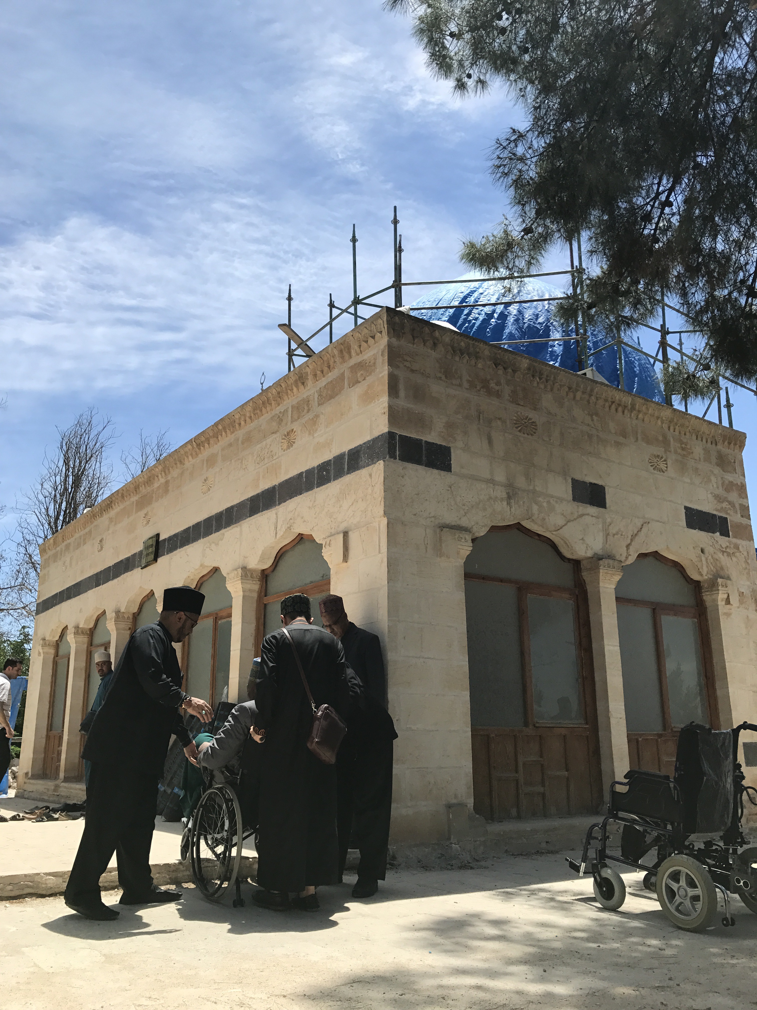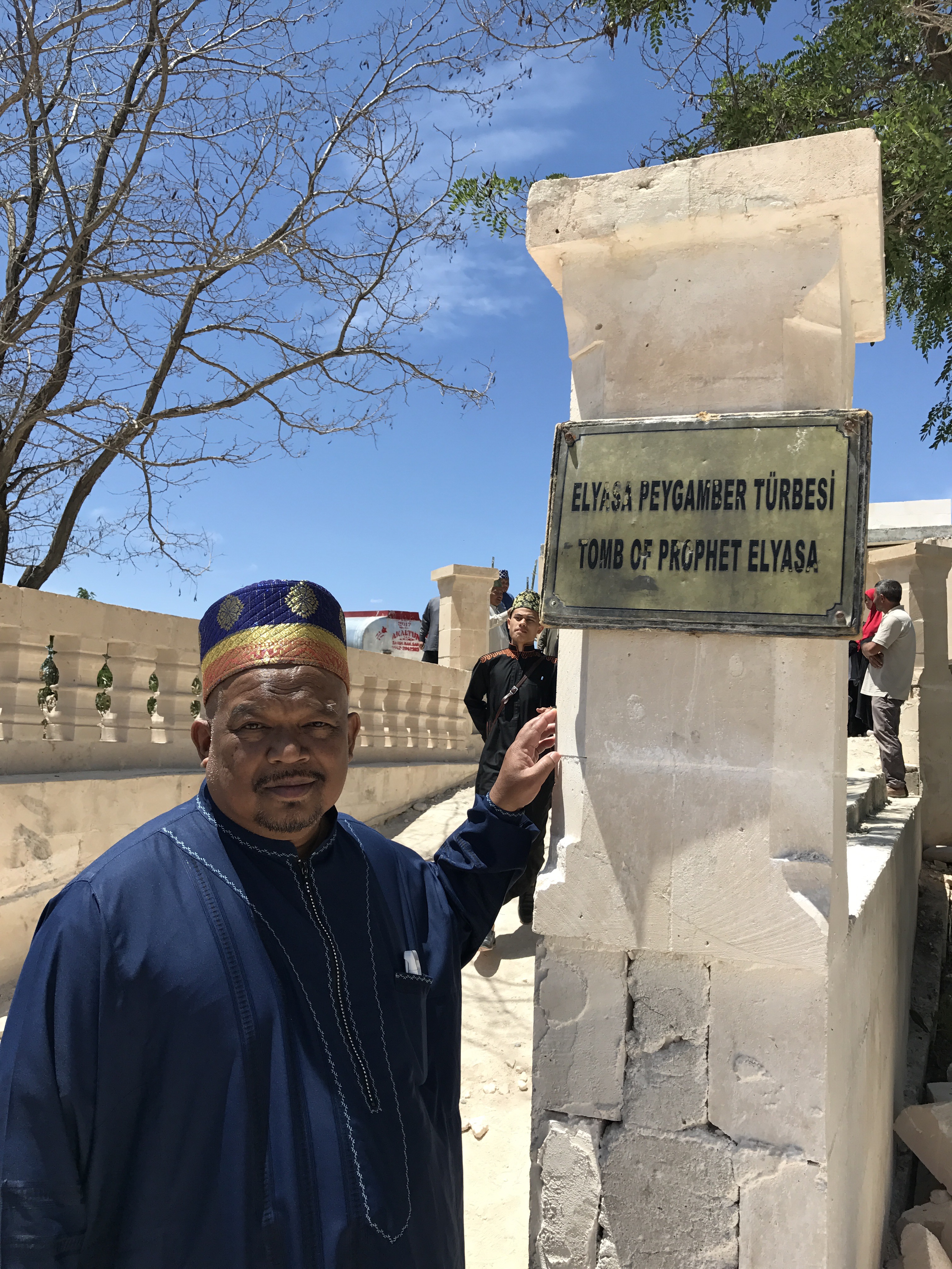Perjalanan diteruskan menuju makam Nabi Ilyasak AS. Agak jauh juga. Cuaca agak panas tetapi seluruh anggota rombongan tetap bersungguh-sungguh khasnya Tuan PE yang berkerusi roda. Bukan mudah untuk sampai ke sini. Dah sampai Istanbul pun masih kena ambil flight lagi sebab jaraknya lebih 1000 km dari Istanbul. Malah dah sampai Sanliurfa pun masih kena ambil kenderaan untuk tempuh lagi 100 km untuk sampai ke sini. Tak rugi kerana tempat begini sangat mulia. Lokasi bergelanggangnya para nabi dan Rasul ribuan tahun dahulu. Mengajak manusia menyembah Allah. MengagungkanNya, membesarkanNya, takut padaNya, bimbang denganNya. Tempat yg sangat berkat begini, kita kena ziarahi untuk menguatkan roh kita.