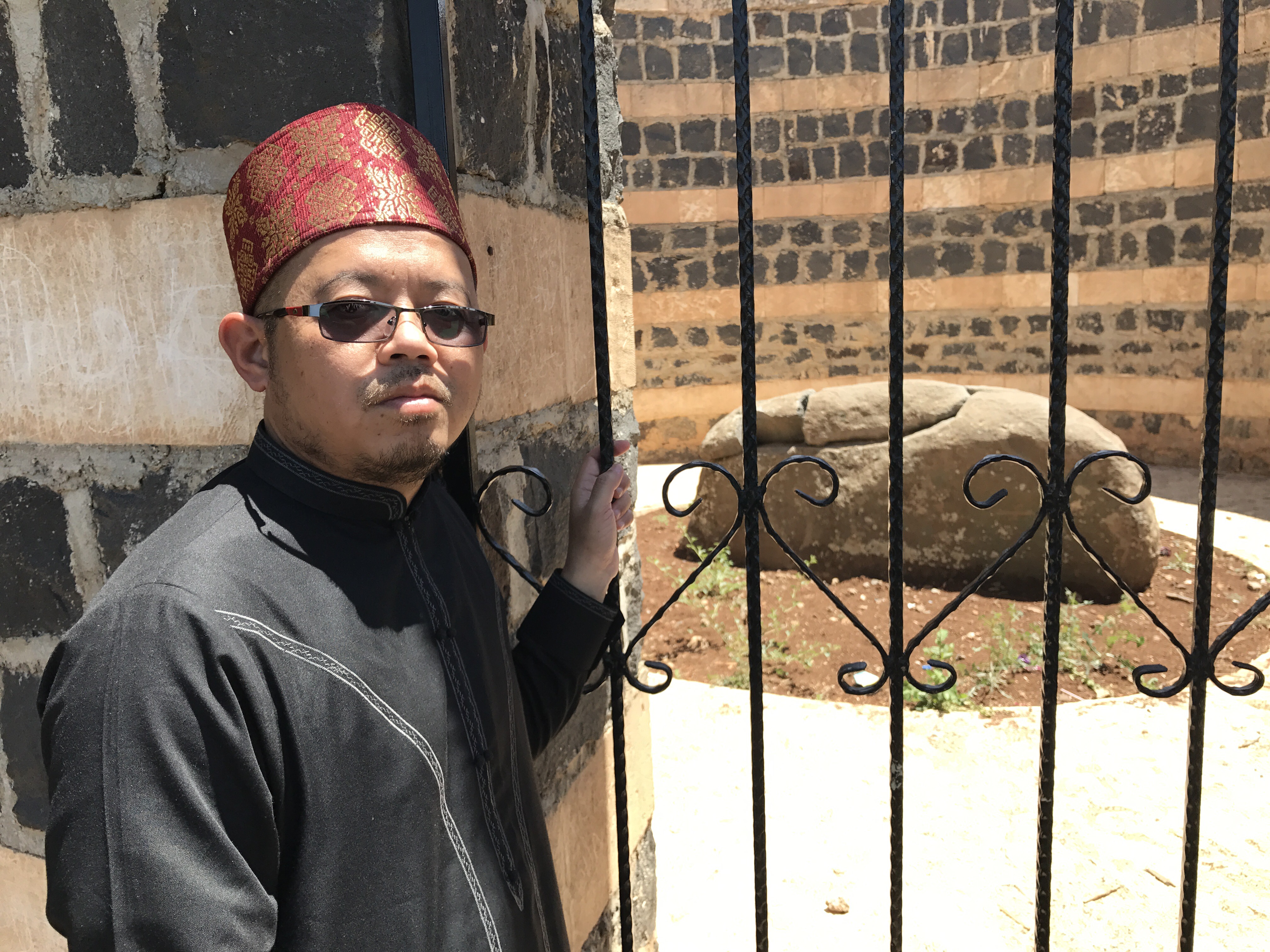Dari makam Nabi Ayub AS kami menuju ke makam Nabi Ilyasak melalui taman-taman yg sedang dibangunkan. Di pertengahan jalan kami dibawa melihat sebutir batu di dalam tembok berpagar. Rupa-rupanya itulah batu yang pernah menjadi tempat bersandar Nabi Ayub. Bahagianya batu yang pernah berkhidmat dengan seorang Rasul. Allah tetap muliakan dengan menjadi kunjungan pemburu berkat.